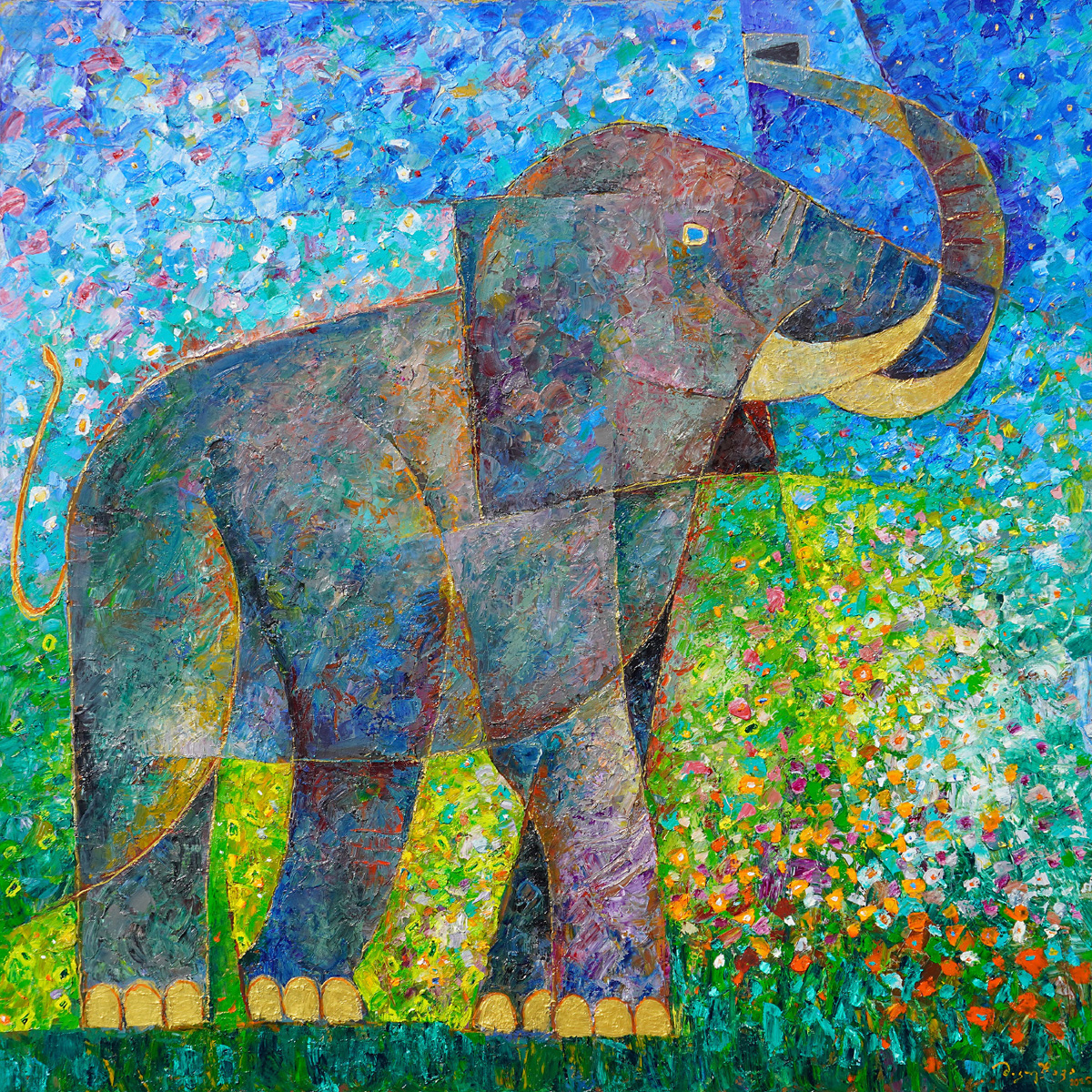 acrylic,oil on canvas 48" x 48" (121 x 121cm.)